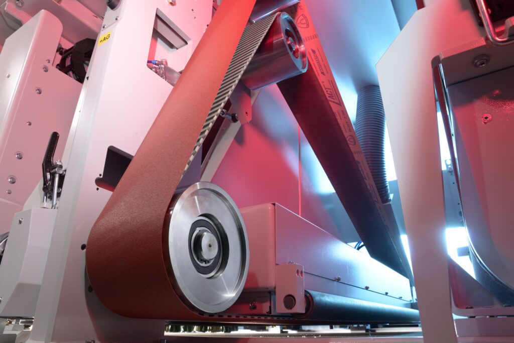 Entre los componentes más apreciados, el lamelar interior de la correa longitudinal que elimina el signo de la oscilación de la misma; la estructura de los platos ISA-ISD independientes de los cilindros, para una sensibilidad extrema y la estructura del cabezal planetario, donde el particular movimiento de los platos garantiza una uniformidad de lijado específica para losas, paneles pantografiados, cantos vivos.
