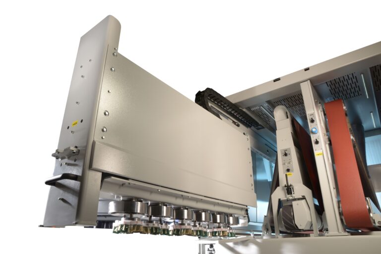 El modelo KSN se puede ensamblar con un sistema de módulos para obtener diferentes secuencias de mecanizado. Gestión de diferentes zonas de presión: planitud. Banda longitudinal con sistema laminar: sin marcas. Tampones ISA-ISD sin cilindros: sensibilidad. Cabezal planetario con platillos patentados: lijado uniforme en placas, paneles pantografados y bordes afilados.